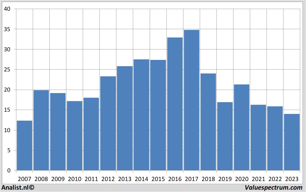 De analisten gaan voor 2023 uit van een nettowinst van 13 miljoen euro. Over dit jaar wordt door het gros van de analisten, zoals gepolst door persbureau Thomson Reuters, een winst per aandeel van 30 cent verwacht. Op basis hiervan komt de koerswinstverhouding op 46.8 te liggen.