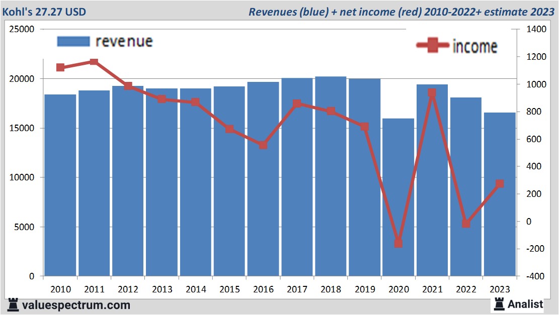 Kohl's gaat morgen haar cijfers over het voorbije kwartaal bekend maken. Over dit kalenderjaar komen de totale verdiensten van het bedrijf uit Menomonee Falls volgens de analisten uit op 16.6 miljard dollar. Dit is beperkt minder dan de opbrengsten over 2022 toen de omzet 18.1 miljard dollar bedroeg.