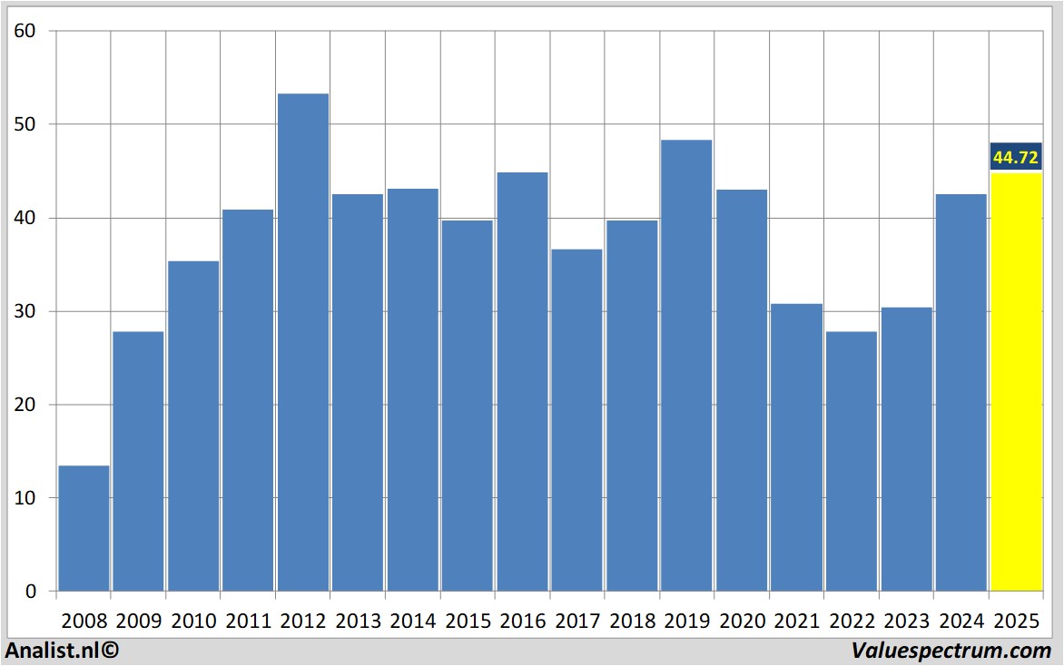Onderaan de streep rekenen de analisten op een nettowinst van 412 miljoen euro. Over dit jaar komt het bedrijf volgens het gros van de analisten uit op een winst per aandeel van 3.46 euro. Op basis hiervan komt de koerswinstverhouding op 12.92 uit.