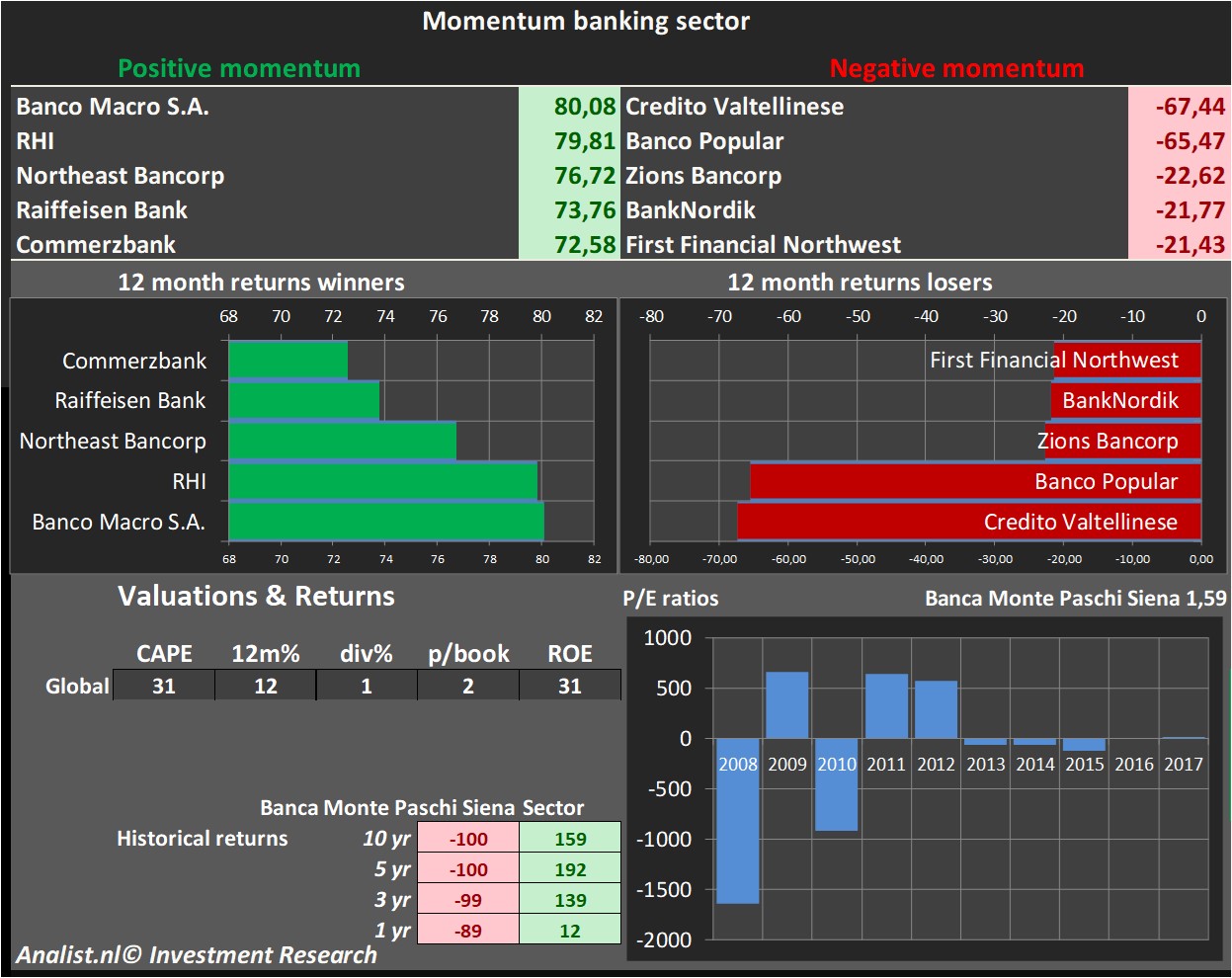 Het aandeel behoort vanaf begin dit jaar door de forse daling van 59 procent één van de slechtere aandelen van de bankensector. Het doorsnee aandeel uit de bankensector leverde de dit jaar een winst op van 143 procent. Overige aandelen uit de peergroup met fors negatieve rendementen zijn onder andere Credito Valtellinese , Banco Popular en Zions Bancorp . Bij de sectorverliezers horen onder andere Banco Macro S.A., RHI en .