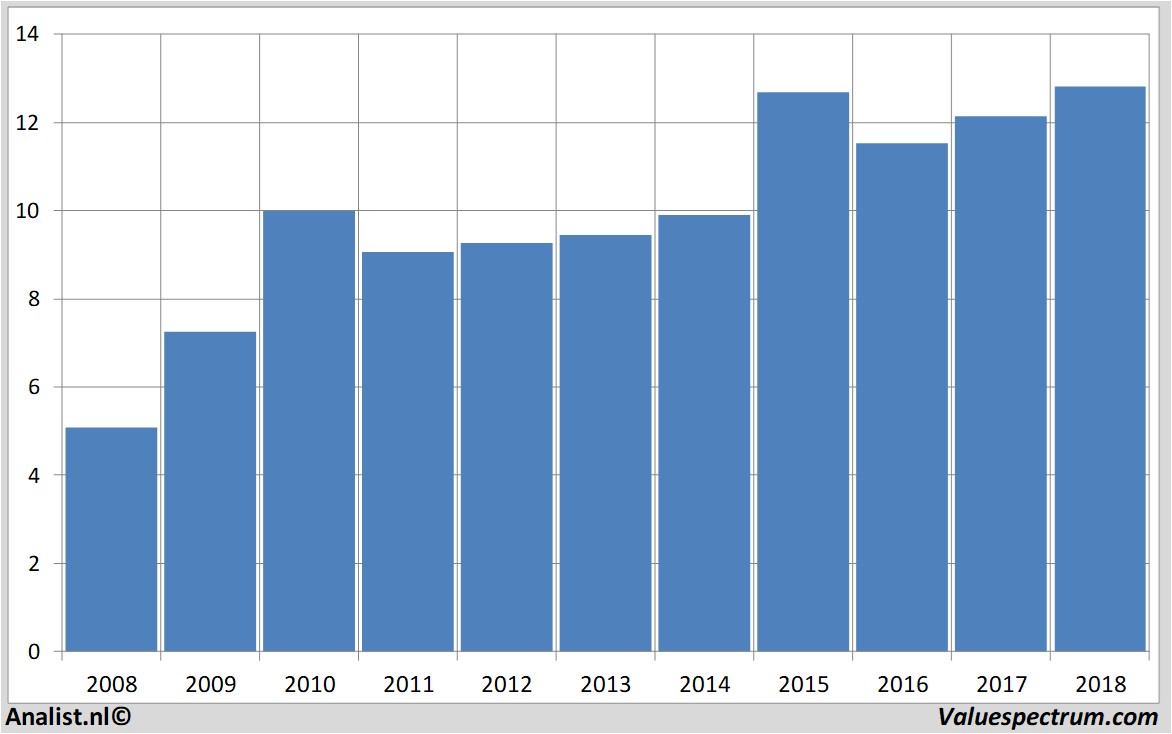 De analisten gaan voor 2018 uit van een nettowinst van 133 miljoen euro. Over dit jaar houdt het bedrijf volgens de analisten een winst per aandeel van 69 cent over. De koerswinstverhouding komt zodoende op 18,58 te liggen.