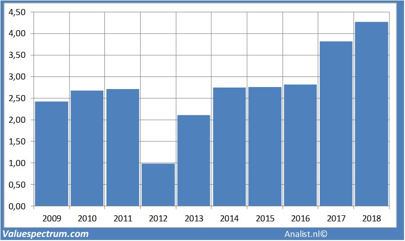 Onderaan de streep rekenen de analisten op een nettowinst van 314 miljoen euro. Over dit jaar komt het bedrijf volgens het gros van de analisten uit op een winst per aandeel van 2,99 euro. Op basis hiervan komt de koerswinstverhouding op 10,27 uit.
