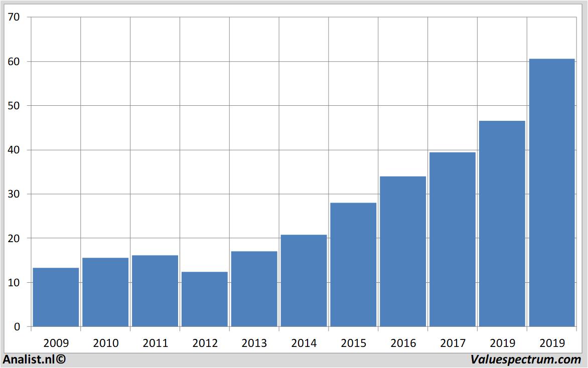 De meeste analisten rekenen voor 2019 op een nettowinst van 733 miljoen euro. Over dit jaar houdt het bedrijf volgens de analisten een winst per aandeel van 2,71 euro over. De koers/winstverhouding komt hiermee op 22,35 te liggen.
