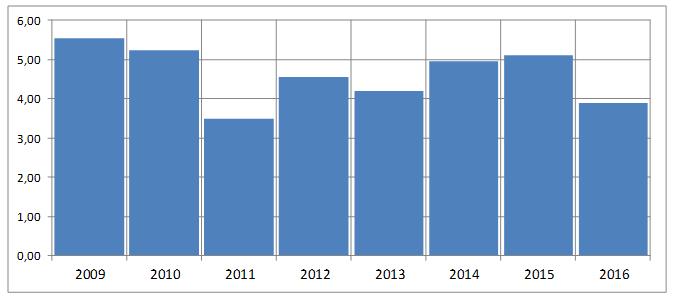 Het aandeel Hal deed het de afgelopen 10 jaar fors beter dan de mondiale investeringssector. Waar de sector over de afgelopen 10 jaar een heel summiere plus van 6,4 procent heeft staat het aandeel Hal ruim 143 procent hoger.
