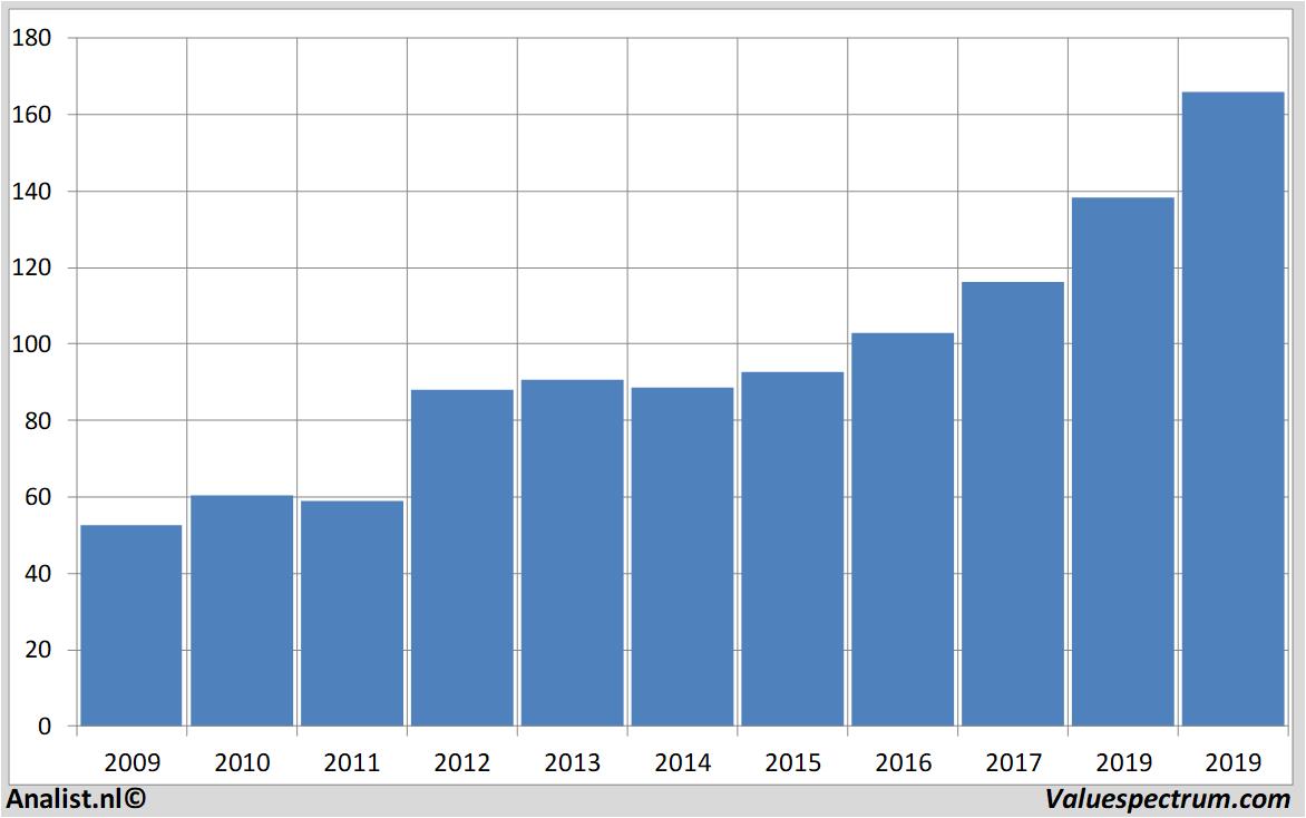 De meeste analisten rekenen voor 2019 op een nettowinst van 1,67 miljard euro. Voor dit jaar ligt de consensus van het resultaat per aandeel op een winst van 6,3 euro. Zodoende komt de koerswinstverhouding op 26,35 uit.