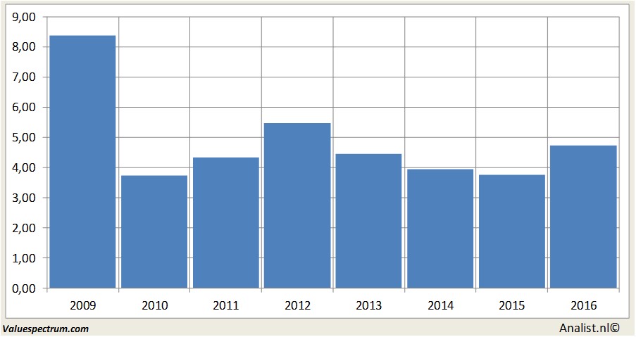 De analisten rekenen voor 2017 op een nettowinst van 479 miljoen GBp. Over dit jaar ligt de consensus van Marks & Spencer 's resultaat per aandeel op een winst van 29 GBp. Op basis hiervan komt de koers/winstverhouding op 13,64 te liggen.