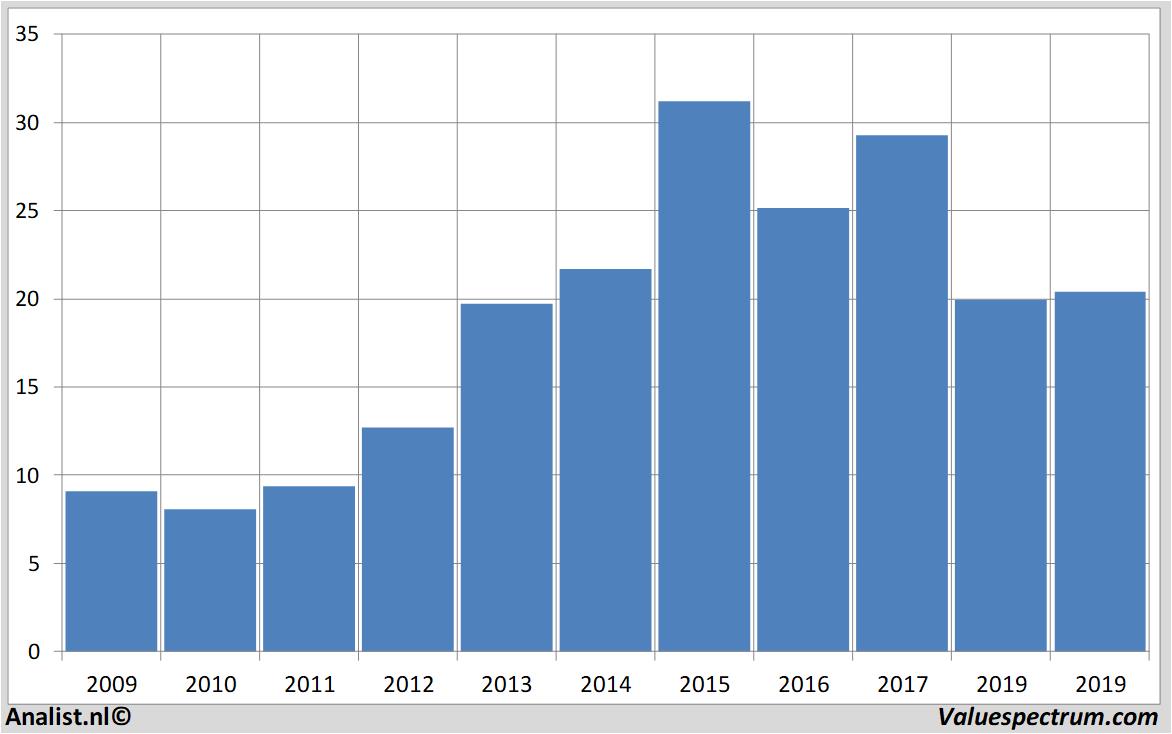 De analisten gaan voor 2019 uit van een nettowinst van 221 miljoen euro. Over dit jaar komt het bedrijf volgens het gros van de analisten uit op een winst per aandeel van 1,74 euro. De koers/winstverhouding komt hiermee op 11,72 te liggen.