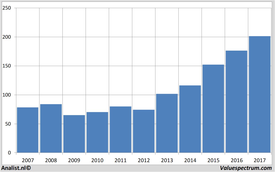De analisten rekenen voor 2017 op een recordnettowinst van 2,06 miljard dollar. Over dit jaar houdt het bedrijf volgens de analisten een winst per aandeel van 9,45 dollar over. De koerswinstverhouding bedraagt hierdoor 21,29.