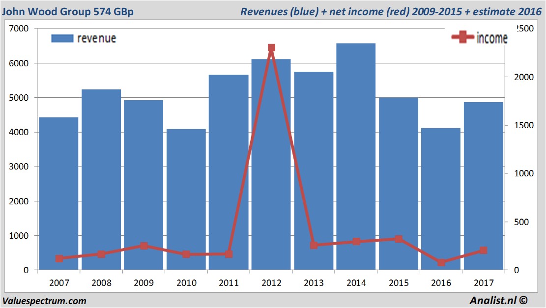 Morgen komt het Engelse John John Wood Group met haar resultaten over het afgelopen kwartaal. Over het huidige boekjaar komt de omzet volgens de analisten uit op 4,87 miljard GBp. Dit is fors meer dan de omzet over 2016 toen het bedrijf 4,12 miljard GBp verdiende.