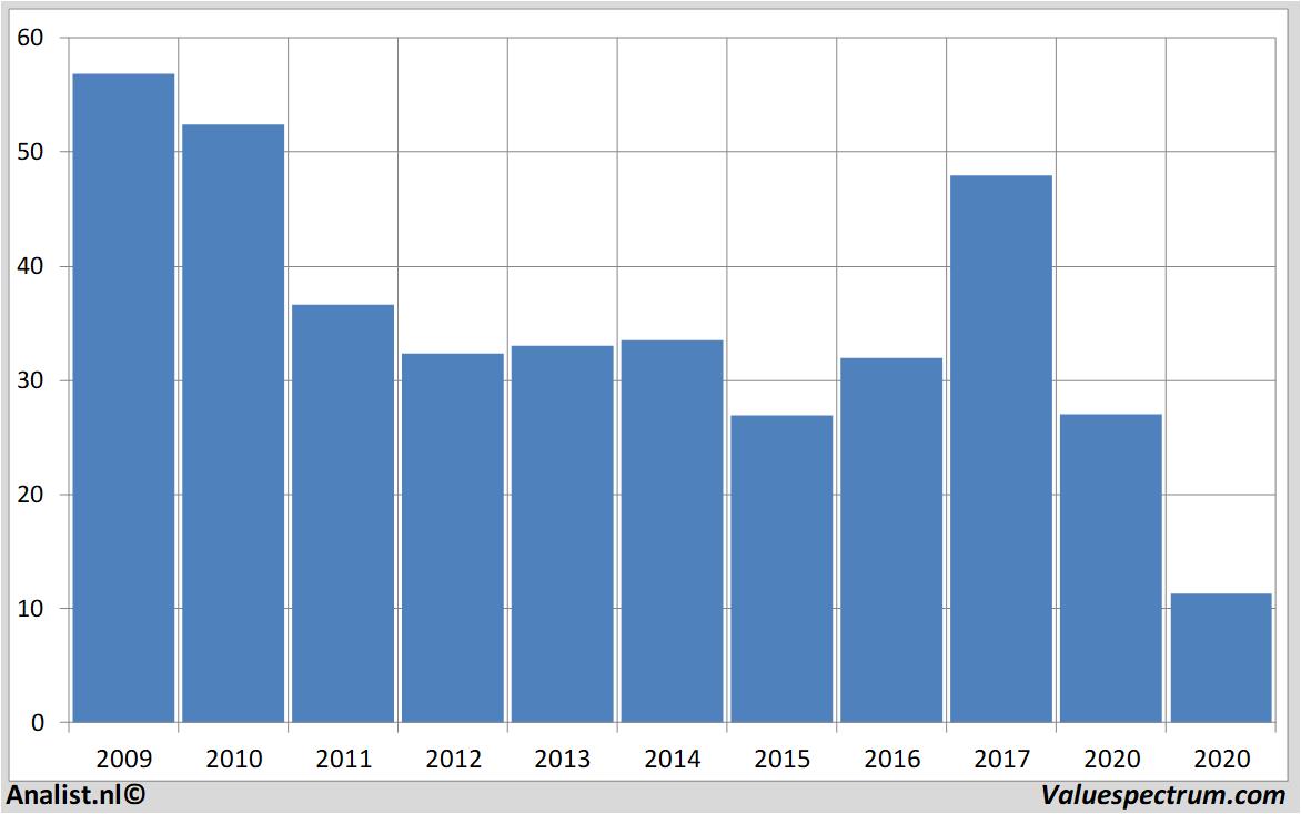 De meeste analisten gaan voor 2020 uit van een nettoverlies van 138 miljoen euro. Over dit jaar ligt de consensus van Salzgitter's resultaat per aandeel op een verlies van 2,47 euro. De koers-winst-verhouding ligt hiermee op -4,57.