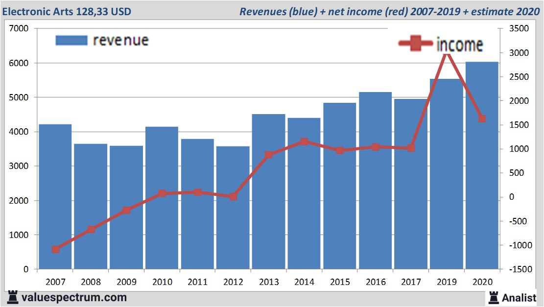 Electronic Arts 's beurswaarde bedraagt op basis van het aantal uitstaande aandelen maal de beurskoers ruim 38,24 miljard . Het aandeel Electronic Arts bewoog de voorbije 12 maanden vrij volatiel. Gemeten vanaf november vorig jaar staat het aandeel Electronic Arts maar liefst 32 procent in het groen. Het aandeel koerste het laatste jaar tussen de 86 en de 147 dollar.