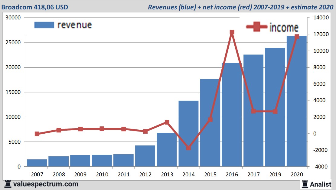 Over 2020 komt de omzet van het bedrijf uit San Jose volgens de analisten uit op 26,33 miljard dollar. Dit is fors meer dan de omzet over 2019 toen de omzet 23,89 miljard dollar bedroeg.