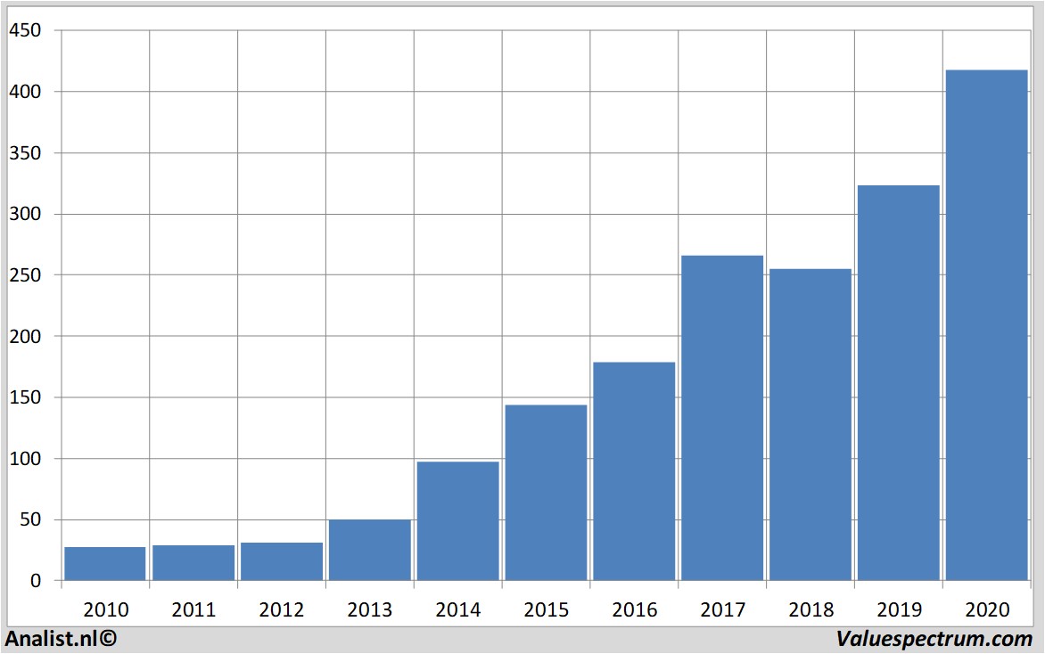 Op basis van het huidige aantal uitstaande aandelen bedraagt de beurswaarde 166,39 miljard dollar. Het aandeel was de afgelopen 12 maanden vrij bewegelijk. Sinds december vorig jaar staat het aandeel maar liefst 35 procent hoger. Het aandeel koerste het laatste jaar tussen de 156 en de 427 dollar.