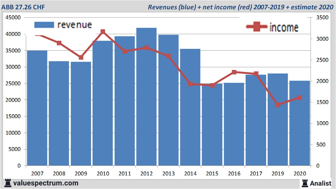 Morgen komt het Zwitserse ABB met haar resultaten over het afgelopen kwartaal naar buiten. Over het lopende jaar ligt de consensus van de omzet van het bedrijf uit Zuerich op 25.82 miljard CHF. Dit is licht minder dan de omzet over 2019 toen het concern 27.98 miljard CHF verdiende.
