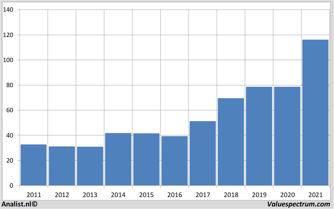 De consensus van het dividend ligt op 79 cent per aandeel. Het dividendrendement ligt zodoende op 0.68 procent. Gemiddeld levert een aandeel in de hardwareproducenten levert een beperkt dividendrendement van circa 0.6 procent op.