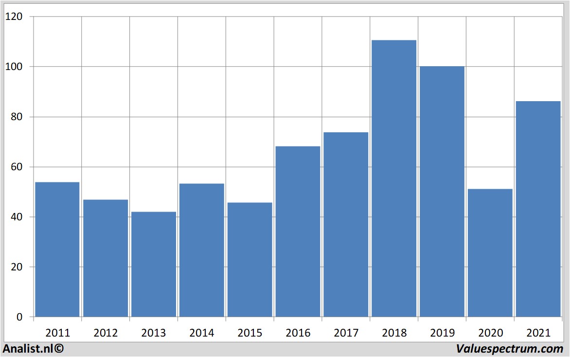 De beurswaarde bedraagt op basis van het aantal uitstaande aandelen maal de beurskoers ruim 3.7 miljard euro. Het aandeel was de afgelopen 12 maanden vrij bewegelijk. Sinds maart vorig jaar staat het aandeel maar liefst 75 procent hoger. Het aandeel koerste het laatste jaar tussen de 43 en de 94 euro.