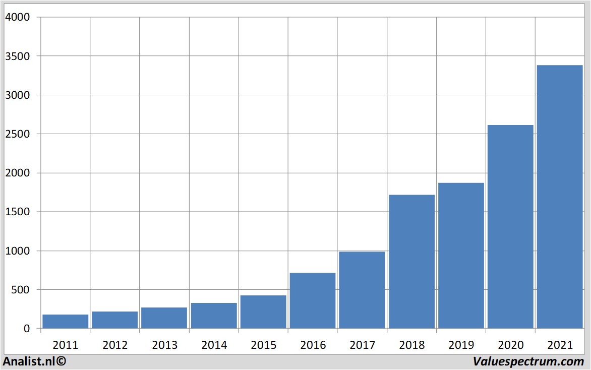 De analisten rekenen voor 2021 op een nettowinst van 28.71 miljard dollar. Voor dit jaar ligt de consensus van het resultaat per aandeel op een winst van 55.87 dollar. De koerswinstverhouding komt zodoende uit op een extreme 60.55.