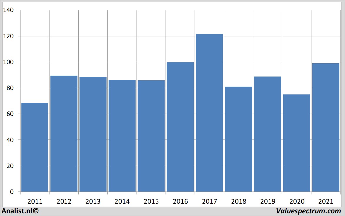De analisten gaan voor 2021 uit van een nettowinst van 9.4 miljard dollar. Volgens de jongste analistenconsensus houdt het bedrijf over dit jaar een winst per aandeel van 6.09 dollar over. De koers/winstverhouding komt hiermee op 16.24 te liggen.