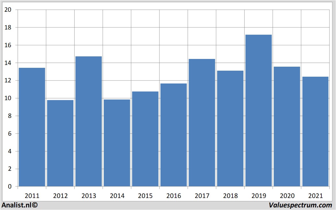 Onderaan de streep rekenen de analisten op een nettowinst van 105 miljoen euro. Op basis van de meest actuele analistenconsensus een houdt het bedrijf een winst per aandeel van 55 cent over. Zodoende komt de koerswinstverhouding op 22.62 uit.