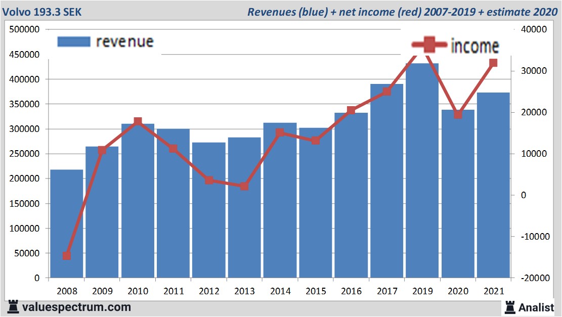 De analisten rekenen voor 2021 op een nettowinst van 31.94 miljard SEK. Volgens de jongste analistenconsensus houdt het bedrijf over dit jaar een winst per aandeel van 15.43 SEK over. Op basis hiervan komt de koerswinstverhouding op 12.53 te liggen.