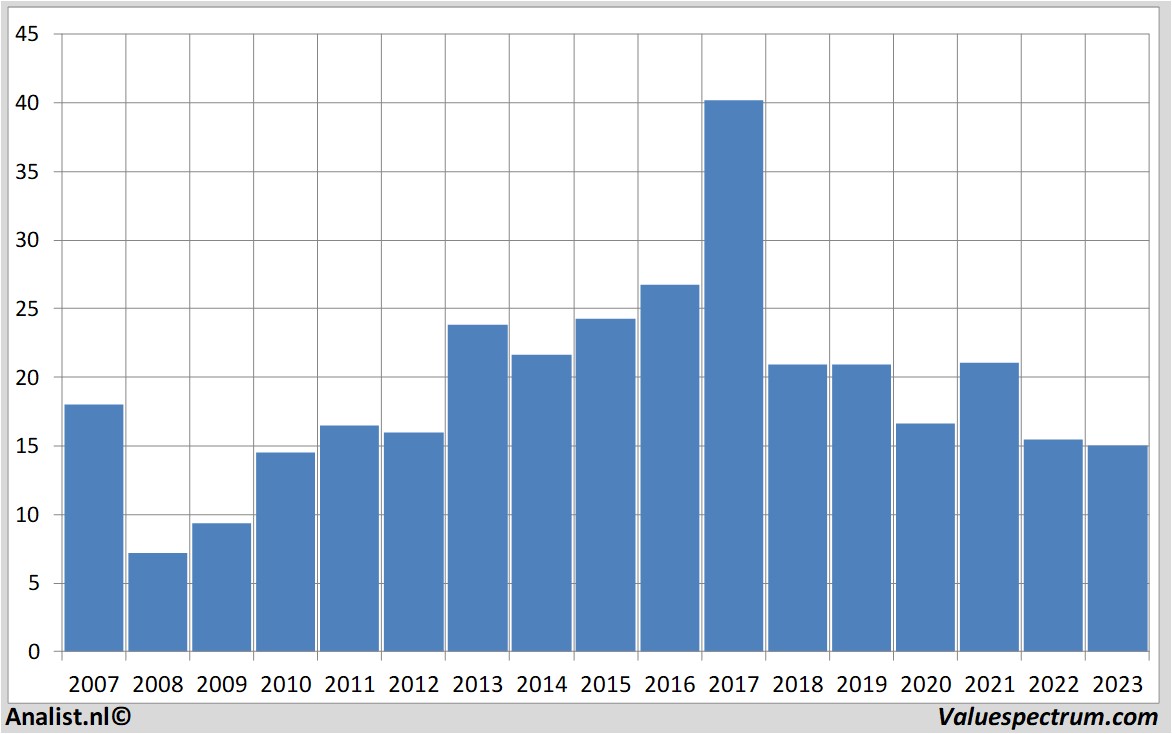 De meeste analisten rekenen voor 2023 op een nettowinst van 22 miljoen euro. Volgens de jongste analistenconsensus houdt het bedrijf over dit jaar een winst per aandeel van 1.43 euro over. Op basis hiervan komt de koerswinstverhouding op 10.49 uit.